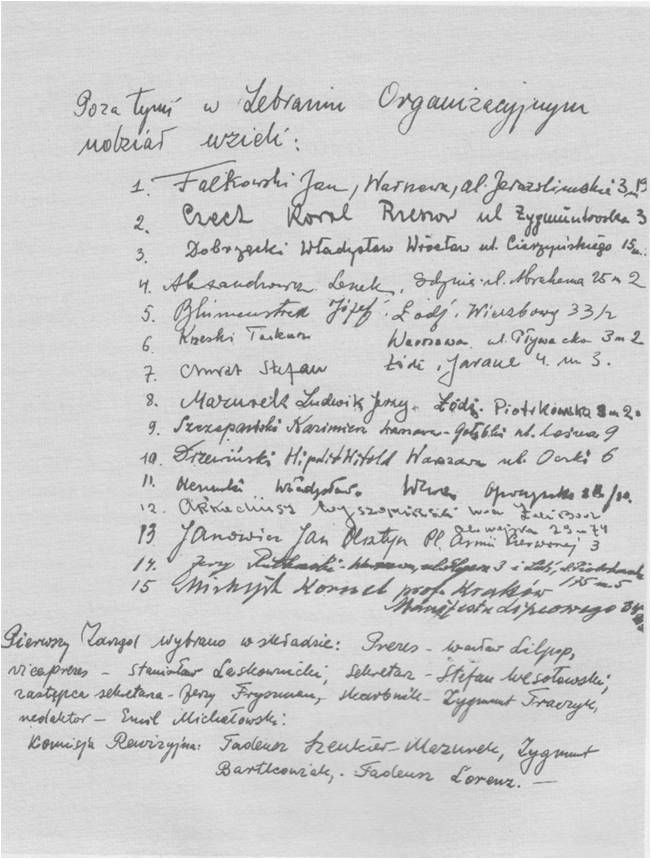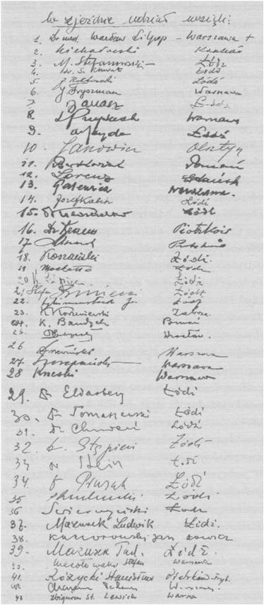 Faksymile listy członków PTU sporządzona własnoręcznie przez dr S. Wesołowskiego